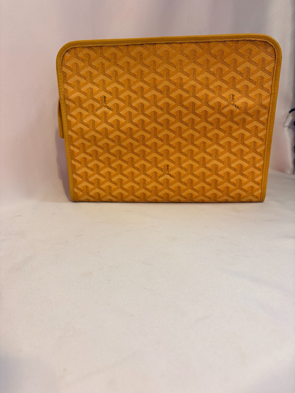 The Goyard Jouvence Pouch combines timeless elegance with everyday function. Crafted from Goyard’s signature hand-painted chevron canvas and calfskin trim, it features a water-resistant interior and sleek zip closure—perfect for organizing essentials in style.