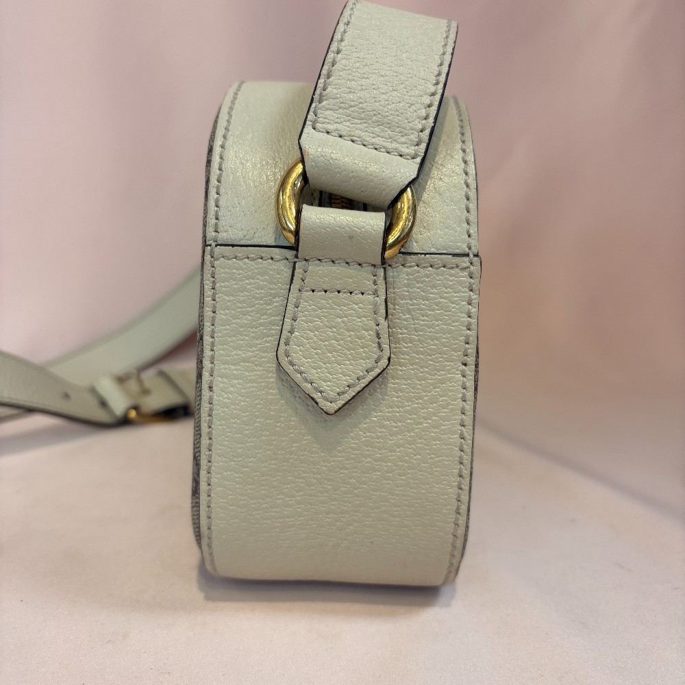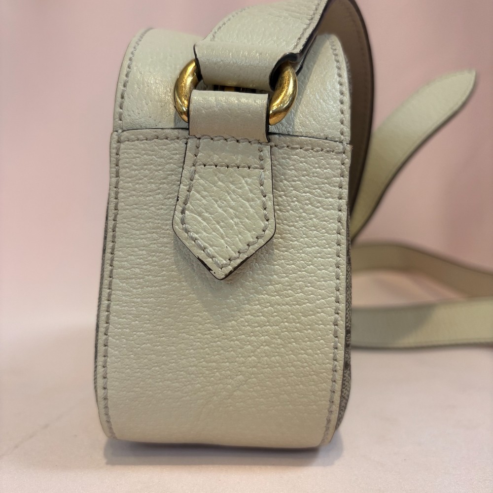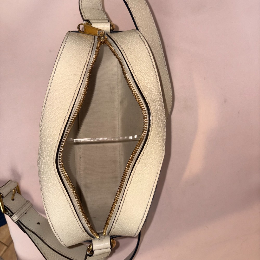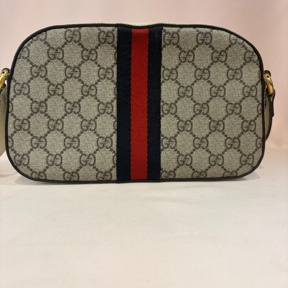 Textured calfskin leather white navy and red classic GG stripe